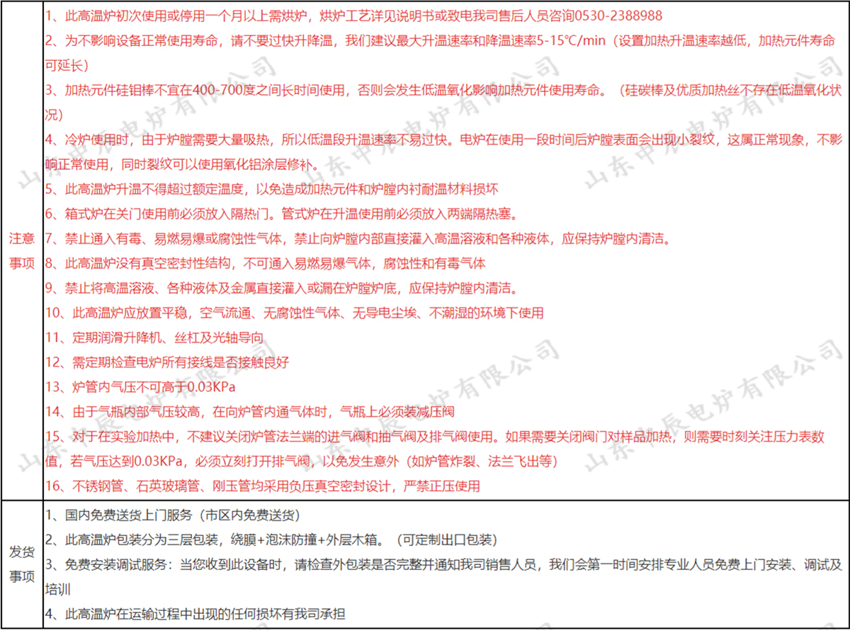 1、耗材如加熱元件、不銹鋼管/石英管/剛玉管、密封圈、樣品坩堝不包含在保修范圍內(nèi)